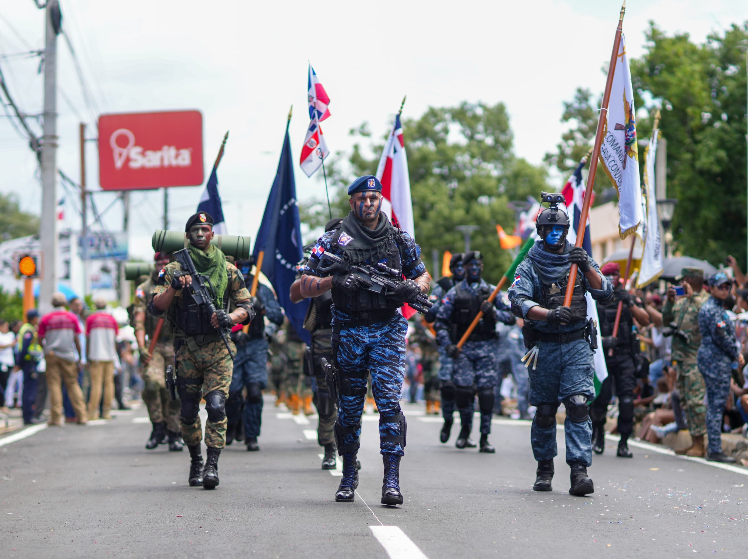 El desfile contó con la participación de miembros del Ejército, Armada y la Fuerza Aérea de República Dominicana, y los agentes de la Policía Nacional, así como estudiantes de distintos centros educativos, quienes desfilaron en honor a los héroes que lucharon por la soberanía dominicana.